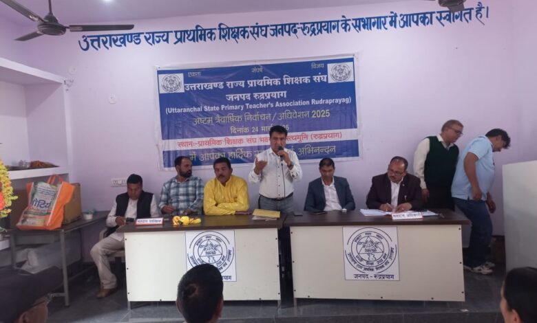 रुद्रप्रयाग। उत्तराखण्ड स्टेट प्राइमरी टीचर्स एसोसिएशन के अष्टम त्रैवार्षिक निर्वाचन मे विक्रम झिंक्वाण तीसरी बार जिलाध्यक्ष निर्वाचित हुए, जबकि जिला मंत्री पद पर दिनेश चन्द्र भट्ट व कोषाध्यक्ष पद पर रघुवीर सिंह बुटोला चुने गए। संघ भवन अगस्त्यमुनि मे प्राइमरी टीचर्स एसोसिएशन की जनपदीय इकाई का निर्वाचन प्रांतीय समिति के सदस्य एवं पर्यवेक्षक मनोज तिवारी व दीपक सजवाण तथा विभागीय निर्वाचन अधिकारी खंड शिक्षा अधिकारी यशवीर सिंह रावत की देख-रेख में संपंन हुआ, जिसमें जिला इकाई के लिए 21 पदाधिकारियों को चयन किया गया। अध्यक्ष पद पर पूर्व जिलाध्यक्ष विक्रम सिंह झिंक्वाण तीसरी बार निर्वाचित हुए। इन्हांेने अपने प्रतिद्वन्दी को 40 मतों से परास्त किया, जबकि मंत्री पद पर पूर्व जिला मंत्री दिनेश चन्द्र भट्ट ने 62 मत पाकर दूसरी बार अपना कब्जा बरकरार रखा। रघुवीर सिंह बुटोला निर्विरोध कोषाध्यक्ष चुने गए। कार्यकारिणी के अन्य पदो मंे ललित मोहन काला ने 67 मत पाकर वरिष्ठ उपाध्यक्ष पद हासिल किया, जबकि त्रिलोक सिंह रावत, उपेन्द्र सिंह बिष्ट शैलेन्द्र सिंह चौहान, गोदाम्बरी बिन्दोला, मनोज कुमार शर्मा निर्विरोध उपाध्यक्ष चुने गये।