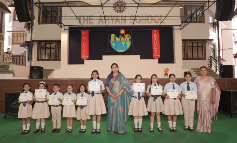 देहरादून। आर्यन स्कूल ने पृथ्वी दिवस के अवसर पर कक्षा पहली से आठवीं तक के विद्यार्थियों के लिए अंतर-कक्षा अंग्रेज़ी भाषण प्रतियोगिता और बुलेटिन बोर्ड प्रतियोगिता का आयोजन किया। भाषण प्रतियोगिता में छात्रों ने ‘लेट्स बी नेचरश्स फ्रेंड’, ‘आई लव नेचर’, ‘सेव द ओशन्स एंड सेव द सीज’ और ‘हिमालयन हार्ट, ग्रीन एंड स्ट्रॉन्ग!’ जैसी कविताओं को उत्साह और भावनात्मकता के साथ प्रस्तुत किया। इस प्रतियोगिता का मूल्यांकन अंग्रेज़ी भाषा की शिक्षिका और शिक्षाविद् सोनिया भल्ला सिंधवानी द्वारा किया गया।