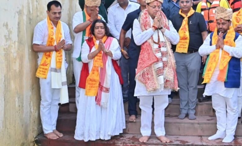 उत्तरकाशी में भागीरथी नदी किनारे आयोजित गंगा आरती में सम्मिलित हुए मुख्यमंत्री धामी