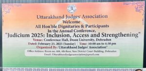 उत्तराखंड जजेस एसोसिएशन का वार्षिक सम्मेलन, दून विश्वविद्यालय सभागार, देहरादून में दिनांक 23.02.2025 रविवार को सफलतापूर्वक सम्पन्न हुआ है, जिसमें समारोह में मुख्य अतिथि के तौर पर मा० सर्वोच्च न्यायालय, नई दिल्ली के न्यायाधीश, मा० न्यायमूर्ति श्री सुधांशू धूलिया जी उपस्थित रहे। जिन्होंने उत्तराखंड जजेज एसोसिएशन को शुभकामनाएं देते हुए अपने सम्बोधन में उत्तराखण्ड राज्य के समस्त न्यायिक अधिकारियों को कहा कि न्यायपालिका के सामने वादकारी एक उम्मीद से आते हैं तथा पीठासीन न्यायाधीशों का यह दायित्व है कि विवादित मामले का निस्तारण शीघ्रता पूर्वक करें, उन्होंने विभिन्न न्यायालयों में विचाराधीन वादों में लम्बी तिथियाँ दिये जाने के दृष्टिकोण को भी बदलने के लिए न्यायाधीशों से आह्वान किया है। यह भी कहा कि बदलती हुई वर्तमान परिस्थितियों में परंपरागत न्याय प्रक्रिया के अनुरूप ढालने की आवश्यकता है। उन्होने इस पर भी जोर दिया कि दोषसिद्धि एवं दण्ड अलग.अलग हैं भले ही दोष सिद्ध हो जाए, लेकिन दण्ड देते समय मामले की समग्रता को ध्यान में रखना भी आवश्यक है। न्यायाधीशों के निर्णय लेने की प्रक्रिया अपने आप में कठिन है। उन्होने इस बात पर भी बल दिया कि न्यायाधीशों को केवल विधिक ज्ञान की आवश्यकता नहीं, बल्कि समाज के सभी पहलुओं को जानने के लिए अन्य विषयों का भी अध्ययन उसी प्रकार से करना चाहिए, जिस प्रकार से वह विधि का ज्ञान अर्जित करते हैं। इस अवसर पर अपने संबोधन में मुख्य अतिथि द्वारा इजराइल के उच्चतम न्यायालय के पूर्व अध्यक्ष एवं विधिवेत्ता श्री अहरोन बराक का जिक्र करते हुए कहा कि न्यायाधीशों का विचारण हर वाद में होता है इसलिए न्यायाधीशों को अपना न्यायिक दृष्टिकोण विस्तृत रखना चाहिए।