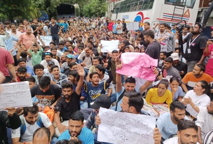 आज यहां अपनी चार सूत्रीय मांगों को लेकर बेरोजगार संघ के बैनर तले सैकड़ो बेरोजगार परेड ग्राउंड में एकत्रित हुए। जहां से उन्होंने मुख्यमंत्री आवास के लिए कूच किया। परेड ग्राउंड से सुभाष रोड, दिलाराम तीराहा होते हुए वह जैसे ही हाथीबडकला पुलिस स्टेशन के पास पहुंचे तो पुलिस ने बैरकेडिंग लगाकर उनको रोक दिया। जिसके बाद उनकी पुलिस से तीखी नोंक झोंक हुई। जिसके बाद वह वहीं पर धरने पर बैठ गये। उनका कहना था कि मंत्रीमंडल की बैठक में लिए गये निर्णय के अनुसार प्रदेश के 117 राजकीय महाविघालयो, 6 विश्वविघालय परिसरो एवं प्रत्येक जनपद के एककृएक राजकीय इण्टर कॉलेज में योग प्रशिक्षक की तैनाती के स्थान पर विभागीय संविदा के आधार पर की जाए। उन्होंने कहा कि प्रारंभिक शिक्षा से माध्यमिक शिक्षा तक के पाठयव्रफमों में योग को मुख्य विषय के रूप में सम्मिलित कर योग शिक्षक के नवीन पदों का सृजन किया जाए। उन्होंने कहा कि प्रदेश के योग प्रशिक्षित बेरोजगार पिछले 18 वर्षो से नियुक्ति की मांग को लेकर संघर्षरत है जिसके परिणाम स्वरूप बडी संख्या में योग प्रशिक्षित बेरोजगार नौकरी की अधिकतम आयु सीमा को पार कर चुके हैं। इसलिए नौकरी की अधिकांश आयु सीमा में तीन वर्ष की विशेष छूट दी जाये। जिसके बाद उन्होंने जिला प्रशासन के माध्यम से मुख्यमंत्री को ज्ञापन प्रेषित किया।