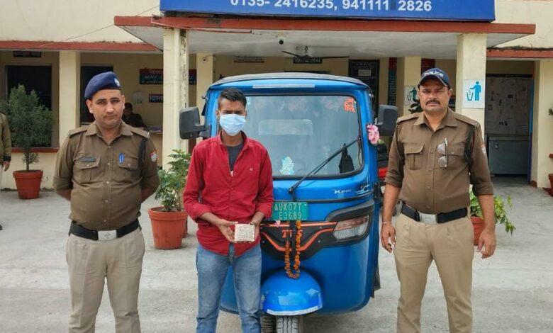 घटना में प्रयुक्त ई-रिक्शा संख्या UK07TE–3689 (TVS KING) बरामद किया गया।