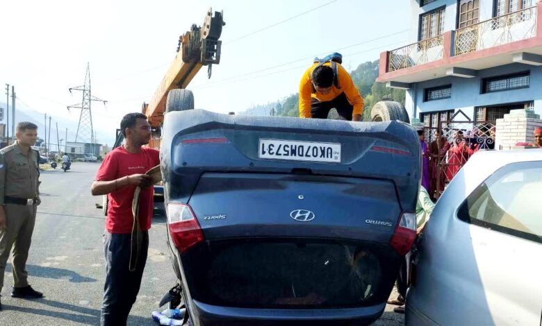 कंडीसौड़ के समीप कार सड़क पर पलटी,दो महिला डाक्टर सहित चार घायल