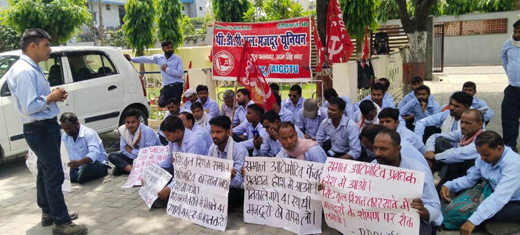 कारखाने से निकाले गए मजदूरों ने किया श्रम आयुक्त कार्यालय पर प्रदर्शन