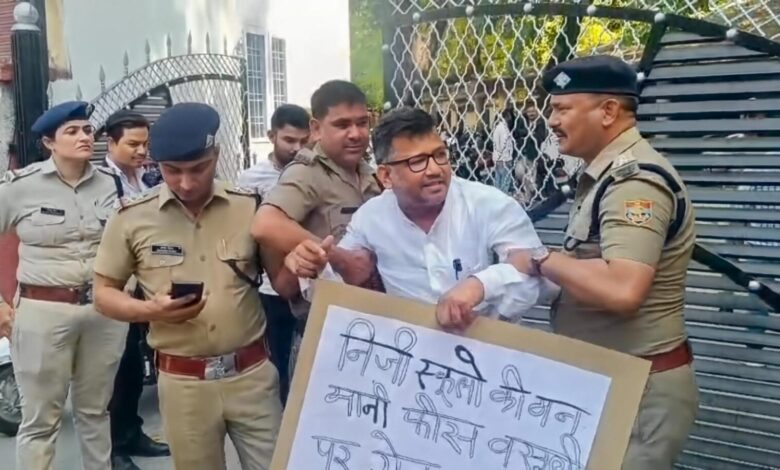 किताब विक्रेताओं की मनमानी के खिलाफ धरना दे रहे अधिवक्ता को पुलिस ने उठाया