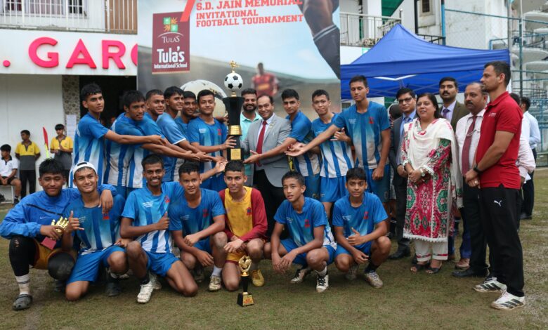 देहरादून। तुलाज़ इंटरनेशनल स्कूल ने 7वां एस.डी. जैन मेमोरियल फुटबॉल चैम्पियनशिप का आयोजन किया। पाँच दिनों तक चले इस टूर्नामेंट में 24 टीमों ने भाग लिया। टूर्नामेंट के उद्घाटन समारोह में तुलाज़ इंस्टीट्यूट के निदेशक प्रो. (डॉ.) शैलेन्द्र कुमार तिवारी मुख्य अतिथि के रूप में उपस्थित रहे। लड़कों और लड़कियों की श्रेणी में 12-12 टीमों ने हिस्सा लिया। इसमें वुडस्टॉक, इकोल ग्लोबल, वैन्टेज हॉल, एशियन स्कूल, डीआईएस रिवरसाइड, वाइनबर्ग एलेन, ओकग्रोव मसूरी, के.वी. आईएमए, आर्मी पब्लिक स्कूल, और मेज़बान तुलाज़ इंटरनेशनल स्कूल जैसे प्रमुख स्कूल शामिल थे।
