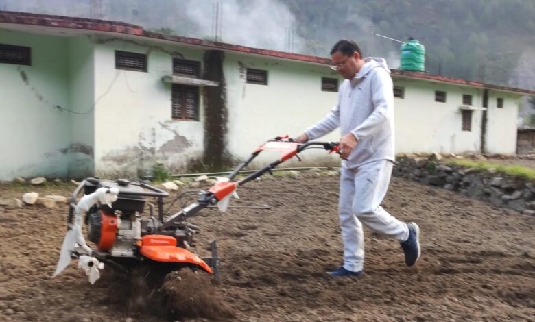 खेत में सीएम धामी को मंडुआ की बुआई करते देख चौंके लोग