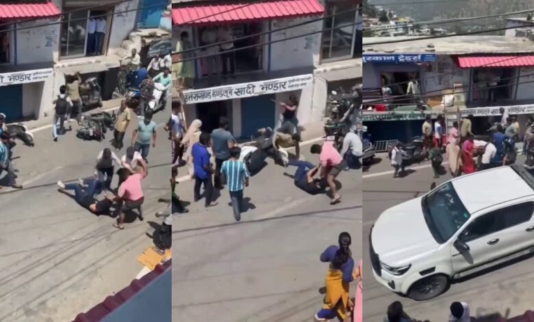 चंबा बाजार के वीसी गबर सिंह चैराहे के पास दो पक्षों में किसी बात हो लेकर कहासुनी हो गई। यह विवाद इतना बढ़ कि बाजार के बीच सड़क पर ही दोनों पक्षों में हाथापाई शुरू हो गई। इस दौरान दोनों पक्षों ने एक-दूसरे पर जमकर लाठियां बरसाईं। इस दौरान मौके पर भारी भीड़ जमा हो गई है। इस बीच भीड़ में से ही किसी ने मारपीट का वीडियो बना लिया।