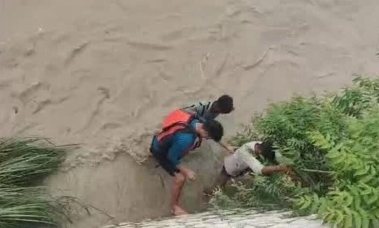 ऋषिकेश। रविवार सुबह मध्य प्रदेश से आया एक कांवड़िया गंगा में डूबने लगा। भारी बारिश के कारण गंगा नदी का जलस्तर काफी बढ़ा हुआ है। कांवड़िया नदी में करीब 400 मीटर दूर तक बहता चला गया। जल पुलिस के हेड कांस्टेबल हरीश गंुसाई ने जान की परवाह न करते हुए उफनती गंगा में छलांग लगा दी। जिसके बाद हेड कांस्टेबल ने इस कांवड़िया को मौत के मुंह से बाहर निकाला। त्रिवेणी घाट पर फूल बेचने वाले युवक पवन ने भी उसे नदी से बाहर निकलने में मदद की। त्रिवेणी घाट पुलिस स्टेशन प्रभारी प्रकाश पोखरियाल ने बताया कि बड़ी संख्या में श्रद्धालु जलाभिषेक के लिए नीलकंठ महादेव मंदिर जा रहे हैं। कई श्रद्धालु त्रिवेणी घाट में गंगा स्नान के लिए आते हैं। रविवार के रोज यहां पर काफी भीड़ थी, एक कांवड़िया जल लेने के लिए गंगा में गया और वह पानी के तेज बहाव के साथ बहने लगा। मौके पर मौजूद जल पुलिस के हेड कांस्टेबल हरीश गुंसाई ने उसे बचाने के लिए गंगा में छलांग लगा दी। जिसे रस्सी के सहारे किसी तरह से बाहर निकाला गया। कांवड़िये की पहचान गणेश (34 वर्ष) पुत्र जगदीश ग्राम सीगान ईशा नगर छतरपुर मध्य प्रदेश के रूप में हुई है। वह अपने साथियों के साथ यहां आया था।