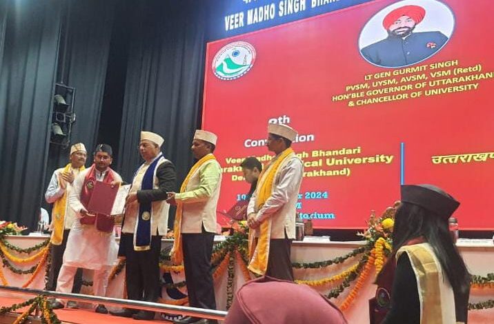 देहरादून। राजधानी के प्रतिष्ठित कॉलेज गुरु राम दास इंस्टिट्यूट ऑफ़ मैनेजमेंट एंड टेक्नोलॉजी, देहरादून के पांच छात्र छात्राओं ने शिक्षा के क्षेत्र में राज्य स्तर की मेरिट लिस्ट में झण्डे गाड़ दिए है। जिन्हे आज उत्तराखण्ड तकनीकी विश्वविद्यालय के दीक्षान्त समारोह में मेरिट मैडल मिले। बी.टेक सिविल इंजीनियरिंग की शिवानी नेगी ने पुरे उत्तराखंड को टॉप किया है उन्हें सिविल इंजीनियरिंग में गोल्ड मैडल मिला। साथ ही भाव्या गुप्ता को घ्म.फार्मा (फार्माकोलॉजी) में गोल्ड मेडल, आरती कुमारी पांडेय को घ्म.फार्मा (फार्मासुटीक्स) में गोल्ड मेडल, ऊर्वशी गर्ग को घ्म.फार्मा (फार्माकोलॉजी) में सिल्वर मैडल एवं अयुश कश्यप को बी.टेक इलेक्ट्रिकल एवं इलेक्ट्रॉनिक्स में ब्रोंज मैडल प्रदान किये गए।