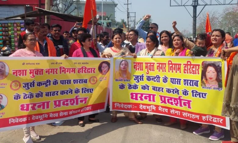 हरिद्वार। ज्वालापुर कोतवाली अंतर्गत आने वाले नेशनल हाईवे पर स्थित शराब के ठेके के खिलाफ स्थानीय निवासियों और भैरव सेना ने शराब के ठेके के सामने धरना-प्रदर्शन किया। प्रदर्शनकारियों ने ठेके को हटाकर कहीं और स्थानांतरित करने की मांग उठाई। ऐसा न होने पर प्रदर्शनकारियों ने उग्र आंदोलन करने की चेतावनी भी दी है।