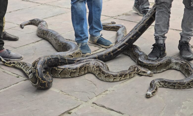 तीन विशालकाय अजगर पकड़े, लोगों में दहशत