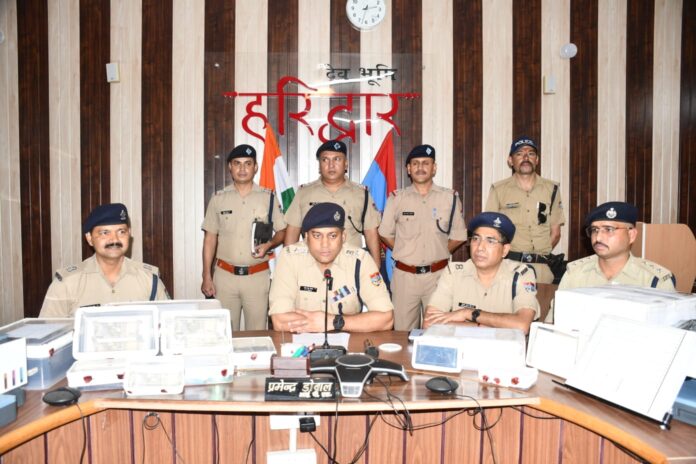 देहरादून। नकली नोट छापने वाले गिरोह का भण्डाफोड़ करते हुए पुलिस ने 6 लोगों को गिरफ्तार कर लिया है। जिनके कब्जे से 2 लाख 25 हजार 500 रूपये के नकली नोट सहित अन्य सामान भी बरामद किये गये है। आरोपी राजधानी देहरादून में किराये के मकान में रहकर जाली नोट का कारोबार कर रहे थे। वरिष्ठ पुलिस अधीक्षक प्रमेन्द्र डोबाल ने बताया कि बीते रोज कोतवाली रानीपुर पुलिस ने एक सूचना के बाद चौकिंग के दौरान सुमन नगर पुलिया पर दो बाइक सवार चार संदिग्धों को रोक कर उनके पास से 500 रूपये के 44 नोट कुल 22 हजार रूपये के नकली नोट बरामद किये गये थे। जिन्होने पूछताछ में बताया कि उन्होंने अपने अन्य साथी मोहित और विशाल के साथ सुद्धोवाला प्रेमनगर देहरादून में किराए के कमरे पर लैपटॉप व प्रिन्टर की मदद से नकली नोट बनाने का काम किया जाता है। जिस पर कोतवाली रानीपुर पुलिस की एक टीम द्वारा सुद्धोवाला प्रेमनगर से आरोपी मोहित पुत्र राजेन्द्र को दबोच कर उसके कब्जे से 500 रुपये के 200 नकली नोट कुल 1 लाख रूपये व उसके किराए के कमरे से एक लैपटॉप, प्रिंटर, 2 ब्लेड़ कटर, 2 चमकीली ग्रीन टेप, व नोट छापने के सामान के साथ तथा दूसरी पुलिस टीम ने दून एनक्लेव पटेल नगर देहरादून से आरोपी विशाल पुत्र राजेश को 500 के 207 नकली नोट कुल 1 लाख 3 हजार 500 रूपये, एक लैपटॉप, एक प्रिन्टर व नकली नोट बनाने का सामान बरामद हुआ। पुलिस के अनुसार आरोपी सुनियोजित तरीके से लेपटॉप में स्केन कर रखे हुए 500 रुपये के असली नोट से जाली नोट तैयार करते थे तथा इन नकली नोटो को अपने साथियो कें माध्यम से देहरादून व हरिद्वार के बाजारों में चलाते थे। ये लोग ज्यादातर भीडभाड़ वाले दुकानों या बुजुर्ग दुकानदारों के पास छोटी-मोटी खरीदारी करने के लिये जाली नोटों को चलाते थे तथा दुकानदार से शेष असली नोट प्राप्त कर लेते थे।