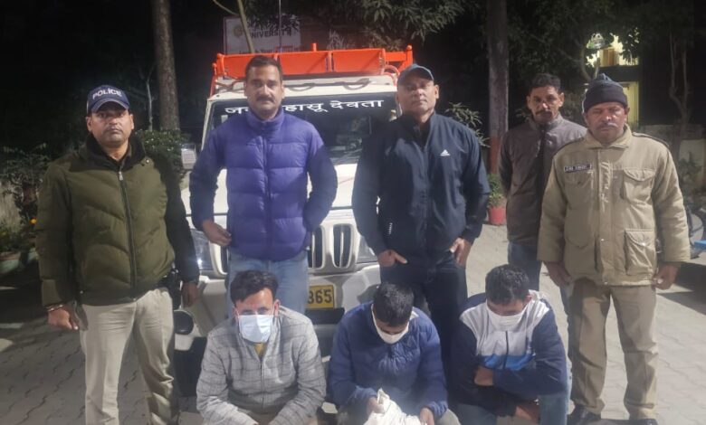 *माननीय मुख्यमंत्री जी उत्तराखंड के ड्रग्स फ्री देवभूमि मिशन 2025 अभियान के तहत वरिष्ठ पुलिस अधीक्षक एसटीएफ श्री नवनीत सिंह भुल्लर द्वारा ड्रग्स के खिलाफ कार्यवाही करने के लिये एंटी नारकोटिक्स टास्क फोर्स (A.N.T.F.) को उत्तराखण्ड के समस्त जनपदों में कड़ी निगरानी रखते हुये कार्यवाही करने हेतु निर्देशित किया गया है। जिसके अनुपालन में उत्तराखण्ड एसटीएफ की एण्टी नारकोटिक्स टास्क फोर्स द्वारा थाना विकासनगर देहरादून पुलिस के साथ संयुक्त अभियान में दिनांक 06.11.2025 की सुबह को थाना विकासनगर देहरादून क्षेत्र से 3 अभियुक्तों 1-दिनेश पुत्र भोपालू नि0 ग्राम जिसऊ घराना तहसील कालसी जनपद देहरादून उम्र 26 वर्ष, 2- कुन्दन चौहान पुत्र अमर सिंह नि0 ग्राम सूर्यो तहसील कालसी जनपद देहरादून, 3- पंकज पुत्र सरदार सिंह नि0 ग्राम सूर्यो तहसील कालसी जनपद देहरादून उम्र 25 वर्ष को 1.505 किग्रा0 चरस परिवहन करते हुए मय वाहन के गिरफ्तार किया गया । अभियुक्तों द्वारा पूछने पर बताया गया कि वह यह चरस पहाड़ी क्षेत्र से सस्ते दामों में लाकर तथा विकास नगर क्षेत्र में ऊंचे दामों में बेचकर अधिक मुनाफा कमाते हैं |