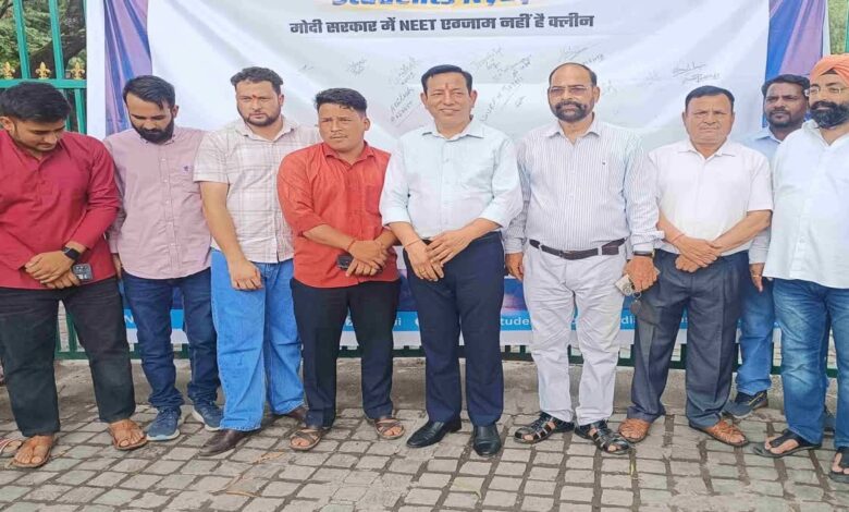 देहरादून। नीट यूजी परीक्षा के पेपर लीक के खिलाफ पूरे देश में विरोध-प्रदर्शन हो रहा है। इसी कड़ी में शुक्रवार को कांग्रेस पार्टी के सहयोगी छात्र संगठन एनएसयूआई ने प्रदेश अध्यक्ष विकास नेगी के नेतृत्व में गांधी पार्क के गेट पर हस्ताक्षर अभियान चलाया। साथ ही एलटीए और केंद्रीय शिक्षा मंत्री के खिलाफ नारेबाजी करते हुए 33 लाख युवाओं को न्याय दिलाए जाने की मांग उठाई। एनएसयूआई के प्रदेश अध्यक्ष विकास नेगी ने कहा कि नीट यूजी और यूजीसी-नेट दोनों परीक्षाएं परीक्षाएं बहुत महत्वपूर्ण होती हैं। उन्होंने कहा कि पहले नीट यूजी का पेपर लीक होता है, उसके बाद यूजीसी-नेट के पेपर में धांधली होती है, जोकि दुर्भाग्यपूर्ण है। विकास नेगी ने कहा कि इन दोनों परीक्षाओं को एनटीए आयोजित करवाता है, लेकिन नेशनल टेस्ट एजेंसी की तरफ से जो भी परीक्षाएं आयोजित कराई जा रही हैं, वह धांधली की भेंट चढ़ रही हैं। उन्होंने कहा कि एनएसयूआई की तरफ से चलाए जा रहे हस्ताक्षर अभियान के माध्यम से यह पता लगाया जा रहा है कि कितने युवा एनडीए के विरोध में हैं। एकत्रित किए गए डाटा को जिला प्रशासन के माध्यम से राष्ट्रपति को भेजा जाएगा।