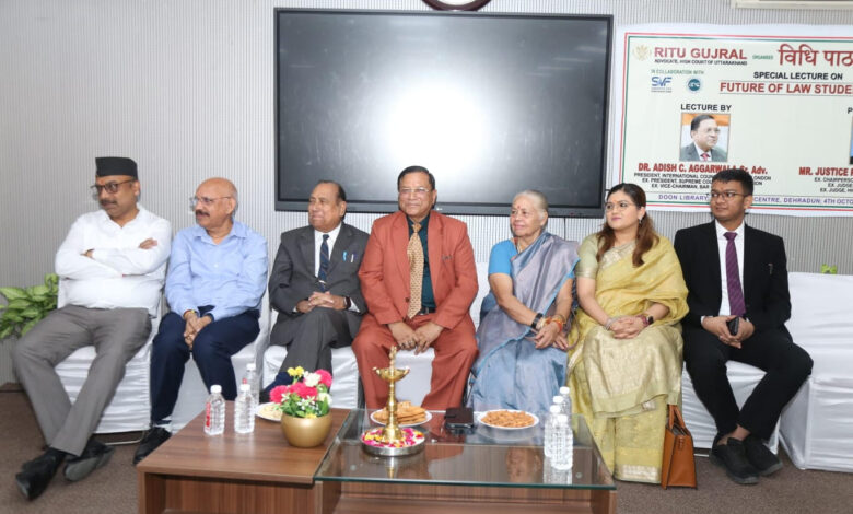 देहरादून। “भविष्य के विधि छात्र” विषय पर एक विशेष व्याख्यान का आयोजन दून पुस्तकालय एवं अनुसंधान केंद्र, लैंसडाउन चौक में अधिवक्ता ऋतु गुजराल ने किया। इस अवसर पर मुख्य वक्ता के रूप में देश के प्रख्यात विधिवेत्ता, वरिष्ठ अधिवक्ता डॉ. (अधि.) आदिश सी. अग्रवाल उपस्थित रहे, जो अंतरराष्ट्रीय न्यायविद परिषद के अध्यक्ष, अखिल भारतीय बार संघ के अध्यक्ष तथा सर्वोच्च न्यायालय बार संघ के पूर्व अध्यक्ष हैं।