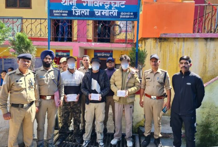 जानकारी के अनुसार बीती 20 जून को गाजियाबाद निवासी प्रेम कुमार पुत्र धर्मेंद्र कुमार ने थाना गोविन्दघाट पर सूचना दी कि वे अपने दो पुरुष व दो महिला साथियों के साथ फूलों की घाटी घूमने आए थे। बताया कि 19 जून की रात करीब 12 बजे घांघरिया स्थित लक्ष्मण गंगा नदी पर बनी पुलिया के पास तीन अज्ञात बदमाशों ने उन्हें रोक लिया। बदमाशों ने उन सभी के साथ लाठीकृडंडों व पत्थरों से मारपीट की। उन्होंने प्रेम कुमार की जेब से पर्स व उसमें रखे 3 हजार रुपये छीन लिए। बदमाशों ने उनका कॉलेज पहचान पत्र भी लेकर फोटो खींची और धमकी दी कि यदि पुलिस को सूचना दी तो वे कॉलेज आकर गोली मार देंगे। इसके अलावा, बदमाशों ने उनसे व उनके सभी साथियों के मोबाइल फोन छीन लिए और जबरदस्ती कोड पूछकर कुल 47 हजार रुपये गूगल पेध्फोन पे के माध्यम से किसी अज्ञात नंबर पर ट्रांसफर करवा दिए। बदमाशों ने महिला साथियों के साथ भी अभद्रता की और डरा धमकाकर उनकी तलाशी ली। मामले की संवेदनशीलता और पर्यटन क्षेत्र को देखते हुए पुलिस ने तत्काल मुकदमा दर्ज कर लुटेरों की तलाश शुरू कर दी गयी। लुटेरों की तलाश में जुटी पुलिस टीमों द्वारा कड़ी मशक्कत के बाद बीती रात घटना में शामिल तीनों शातिर बदमाशों को घांघरिया बायपास रास्ते से गिरफ्तार कर लिया गया। जिनके कब्जे से लूटा गया माल, जिसमें 18 हजार रुपये नगद और 1 आईफोन शामिल है, बरामद किया है। गिरफ्तार बदमाशों की पहचान गुरविंदर सिंह उर्फ गोपी पुत्र बलजिंदर सिंह, राजेंद्र सिंह पुत्र लखविंदर सिंह और वंशदीप सिंह पुत्र लखविंदर सिंह के रूप में हुई है। ये तीनों निवासी टीमोंवाल, थाना खलचिया, जनपद अमृतसर (पंजाब) के रहने वाले हैं। बहरहाल पुलिस ने उन्हे न्यायालय में पेश कर जेल भेज दिया है।