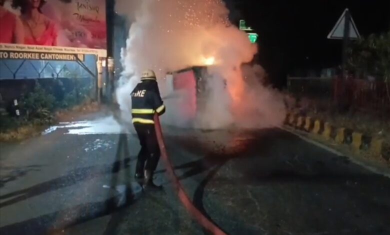 हरिद्वार। रुड़की में एक लोडर पिकअप वाहन में अचानक भीषण आग लग गई। देखते ही देखते आग ने विकराल रूप घारण कर लिया। जिससे मौके पर अफरा-तफरी मच गयी। इसकी सूचना फायर ब्रिग्रेड को दी गयी। मौके पर पहुंची फायर बिग्रेड ने बड़ी मुश्किल से आग पर काबू पाया। किसी तरह से फायर बिग्रेड ने डीजल टैंक फटने से बचा लिया किन्तु इस दौरान वाहन पूरी तरह से जलकर खाक हो गया। इस हादसे में वाहन चालक गंभीर रूप से घायल हो गया। जिसे उपचार के लिए अस्पताल में भर्ती कराया गया है।