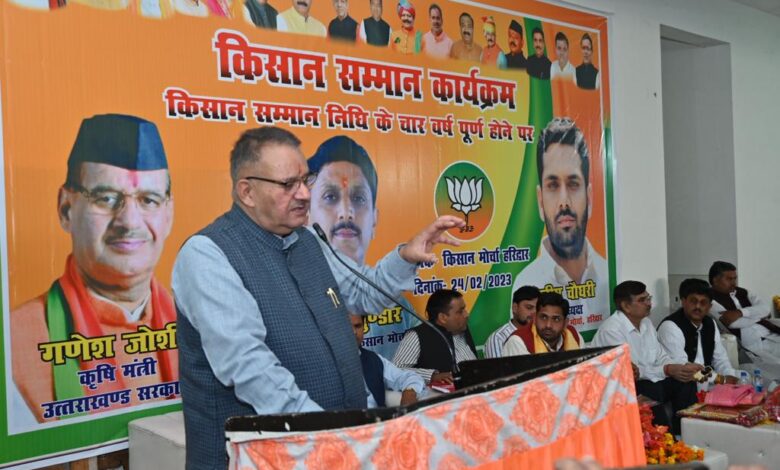 हरिद्वार। प्रदेश के कृषि एवं कृषक कल्याण मंत्री गणेश जोशी ने शुक्रवार को जनपद हरिद्वार के लक्सर में प्रधानमंत्री किसान सम्मान निधि योजना के 04 वर्ष पूर्ण होने पर भाजपा किसान मोर्चा द्वारा आयोजित कार्यक्रम में बतौर मुख्य अतिथि प्रतिभाग किया। इस अवसर पर लक्सर पहुंचने पर भाजपा किसान मोर्चा के पदाधिकारियों एवं पार्टी कार्यकर्ताओं द्वारा मंत्री गणेश जोशी का भव्य स्वागत किया गया। इस अवसर पर मंत्री गणेश जोशी ने अपने संबोधन में कहा कि भारत एक कृषि प्रधान देश है, देश के आर्थिक विकास एवं उन्नति में कृषि की महत्वपूर्ण भूमिका है। देश को खाद्यान्न में आत्मनिर्भर बनाने के लिए कृषि वैज्ञानिकों और हमारे किसान भाईयों एवं बहनों की महत्वपूर्ण भूमिका रही है। कृषि के विकास के लिए तथा कृषि को सुविधाजनक बनाने कि लिए इस प्रदेश में प्रदेश सरकार के द्वारा कृषि विभाग के माध्यम से कृषि से सम्बन्धित महत्त्वपूर्ण जनकल्याणकारी कार्यक्रम संचालित किये जा रहे है जिससे किसान भाई लाभान्वित होने के साथ-साथ कृषि में भी विकास कर रहे है। मंत्री गणेश जोशी ने देश के प्रधानमंत्री नरेन्द्र मोदी का आभार प्रकट करते हुए उन्होंने कहा कि प्रधानमंत्री जी ने 01 दिसम्बर, 2018 से कृषकों को कृषि कार्य हेतु कृषि निवेश कय किये जाने के लिए प्रधानमंत्री किसान सम्मान निधि योजना प्रारम्भ की गई है। जिसके अन्तर्गत पात्र कृषकों को दो हजार रूपये प्रति किस्त की दर से तीन किस्तों में प्रतिवर्ष छः हजार रूपये का भुगतान उनके बैंक खातों में किया जा रहा है। अब तक देश में ग्यारह करोड़ सैंतीस लाख कृषकों के खातों में दो लाख सोलह हजार करोड़ रूपये हस्तानान्तरित कराये जा चुके है। इसी प्रकार प्रदेश में योजनान्तर्गत अब तक लगभग 9 लाख किसान पंजीकृत हो चुके है और अब तक किसानों को रू 1 हजार 9 सौ तीन करोड़ की धनराशि उपलब्ध करायी जा चुकी है। उन्होंने कहा जनपद हरिद्वार में योजनान्तर्गत अब तक लगभग 1 लाख 32 हजार 4 सौ 93 कृषको को लगभग रू02 सौ 63 करोड़ की धनराशि उपलब्ध करायी जा चुकी है। मंत्री जोशी ने कहा वित्तीय वर्ष 2022-23 के तीसरे चतुर्थ मास की किश्त इस माह प्रधानमंत्री द्वारा लगभग 8 लाख किसानों के खाते में रू0 143.60 करोड की धनराशि कृषक भाईयो के खाते में हस्तानान्तिरित की जायेगी । मंत्री गणेश जोशी ने कहा कृषकों को कम ब्याज दर पर कृषि ऋण उपलब्ध कराने के उद्देश्य से उनके किसान क्रेडिट कार्ड बनाकर वितरित किये जा रहे है। जिसके अन्तर्गत प्रदेश में अब तक छः लाख सैंतालीस हजार कृषकों को किसान क्रेडिट कार्ड उपलब्ध कराये जा चुके हैं। इसके साथ ही क्रेडिट धारक किसान को बीमा की सुविधा भी उपलब्ध करायी जाती है। जिसके अन्तर्गत जीवन क्षति अथवा स्थाई अपंगता होने पर रूपये पचास हज