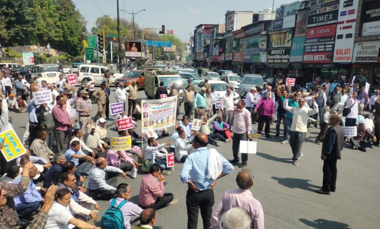 पेंशनर्स ने ‘रास्ता रोको आंदोलन’ कर लगाया घंटाघर पर जाम, गिरफ्तार