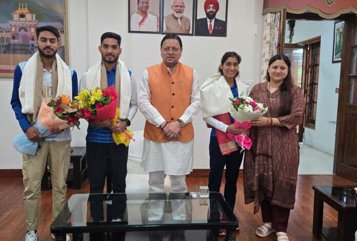 देहरादून। पेरिस ओलंपिक से लौटे खिलाडियों अंकित ध्यानी, परमजीत सिंह व सूरज पंवार ने मुख्यमंत्री से उनके आवास पर मुलाकात की।