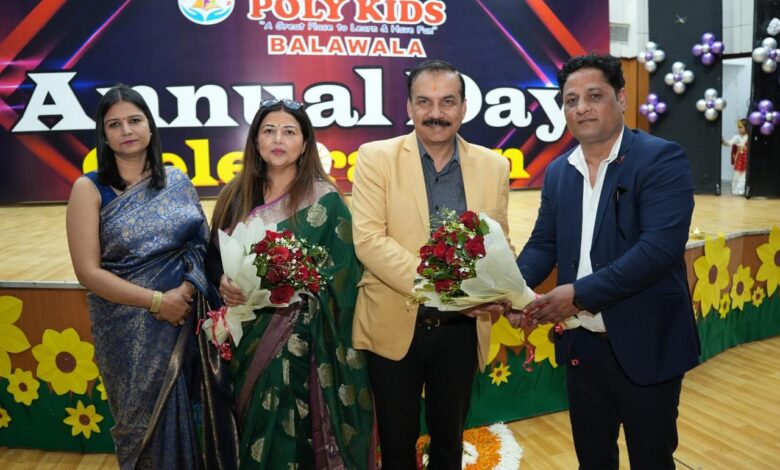 बलावाला शाखा की निदेशक शालिनी नेगी ने सभी गणमान्य व्यक्तियों का स्वागत किया। सभा को संबोधित करते हुए द पॉली किड्स के चेयरमैन कैप्टन मुकुल महेंद्रू ने स्कूल की रचनात्मकता, शिक्षा और विकास की सराहना की। वार्षिक समारोह में संस्थापक निदेशक रंजना महेंद्रू, निदेशक रोहित सिंह, नंदिता सिंह, सिद्धार्थ चंदोला, आलोक छेत्री, वंदना छेत्री, शिप्रा आनंद, कार्यक्रम समन्वयक दीप्ति सेठी, प्रधानाध्यापिका पारुल, पूनम निगम और संगीता मल्होत्रा और द पॉली किड्स के सभी कर्मचारी उपस्थित थे।