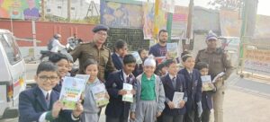 34 वे सड़क सुरक्षा माह-2024 के निर्धारित कार्यक्रम के अनुसार आमजन को सड़क सुरक्षा /यातायात नियमों के सम्बन्ध में विभिन्न माध्यमों से संदेश प्रसारित किये जाने का प्रयास किया जा रहा है । इसी क्रम में *दिनांक 23/01/2024* को *श्री अर्जुन सिंह, निरीक्षक यातायात देहरादून* द्वारा देहरादून शहर के *दिलाराम चौक, सर्वे चौक, घण्टाघर, रिस्पना पुल* पर सड़क सुरक्षा तथा यातायात नियमों के सम्बन्ध महत्वपूर्ण जानकारियों के लिये तैयार *Traffic Carton Book* 120 स्कूली छात्र-छात्राओं को वितरित किये गये । उक्त *Traffic Carton Book* छोटे बच्चों को कार्टून के माध्यम से यातायात जागरुकता हेतु तैयार की गयी है ताकि बच्चे इनको उत्सुकता के साथ पढकर इनका अनुसरण करें।