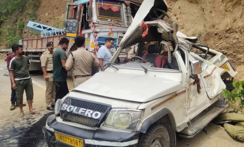 टिहरी। ऋषिकेश-बदरीनाथ राजमार्ग पर गुरुवार दोपहर तीन धारा के पास एनटीपीसी मोड़ पर एक बोलेरो गाड़ी की ट्रक से टक्कर हो गई। इस टक्कर में बोलेरो सवार दो लोगों की मौत हो गई है, जबकि चार लोगों घायल हो गए हैं।मिली जानकारी के अनुसार बोलोरो और ट्रक की टक्कर में करीब चार लोग घायल हुए थे। इन्हें आनन-फानन में अस्पताल पहुंचाया गया। देवप्रयाग अस्पताल में इलाज के दौरान दो लोगों ने दम तोड़ दिया। मृतकों की पहचान रमेश के रूप में हुई है। रमेश की उम्र 40 साल है। हादसे में घायल सोहन सिंह की भी इलाज के दौरान मौत हो गई। सोहन की उम्र 28 साल है। दोनों के शव को बेस अस्पताल श्रीनगर पी एम हेतु भिजवाया गया है।बताया जा रहा हे कि बोलेरो गाड़ी में उत्तर प्रदेश के पीलीभीत के लोग थे। ये सभी श्रीनगर में काम करने जा रहे थे। इसी बीच उत्तराखंड में उनकी गाड़ी की ट्रक से टक्कर हो गई। इस टक्कर में चार लोग घायल हो गए हैं। घायलों का उपचार देवप्रयाग बागी अस्पताल में चल रहा है।