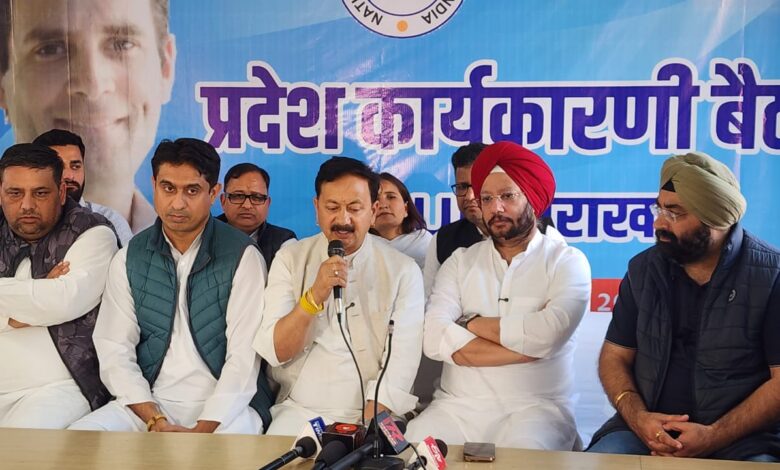 देहरादून। कांग्रेस पार्टी द्वारा चलाये जा रहे ‘‘मेरा वोट-मेरा अधिकार’’ अभियान के तहत उत्तराखंड प्रदेश कांग्रेस कार्यालय में युवा कांग्रेस एवं एनएसयूआई की प्रदेश कार्यकारिणी की संयुक्त बैठक प्रदेश कांग्रेस अध्यक्ष करन माहरा एवं अखिल भारतीय कांग्रेस कार्यसमिति (सीडब्लूसी) के सदस्य गुरदीप सिंह सप्पल, युवा कांग्रेस के राष्ट्रीय अध्यक्ष उदयभानु चिब, एवं एनएसयूआई के राष्ट्रीय अध्यक्ष वरूण चौधरी की उपस्थिति में आयोजित की गई। बैठक में प्रदेश युवा कांग्रेस एवं एनएसयूआई के पदाधिकारी उपस्थित थे। बैठक में कांग्रेस कार्यसमिति (सीडब्लूसी) के सदस्य गुरदीप सिंह सप्पल ने युवा कांग्रेस एवं एनएसयूआई के प्रदेश पदाधिकारियों से कांग्रेस पार्टी द्वारा प्रदेशभर में आगामी तीन महीने तक चलाये जाने वाले ‘‘मेरा वोट मेरा अधिकार’’ कार्यक्रम की जानकारी साझा करते हुए कहा कि कांग्रेस पार्टी उत्तराखंड प्रदेश में एक अभियान चला रही है जिसकी शुरुआत 4 मार्च 2025 से करी दी गई है। इस अभियान के माध्यम से संविधान द्वारा हमें दिये गये वोट के अधिकार की ताकत से आम जनता को रू-ब-रू कराने के साथ ही भाजपा सरकार द्वारा चुनाव जीतने के लिए जनता को उसके अधिकार से वंचित करने के षड़îंत्र का भी पर्दाफाश किया जायेगा। इसके उपरान्त प्रदेश कार्यालय में सभी नेतागणों की संयुक्त पत्रकार वार्ता का भी आयोजन किया गया।