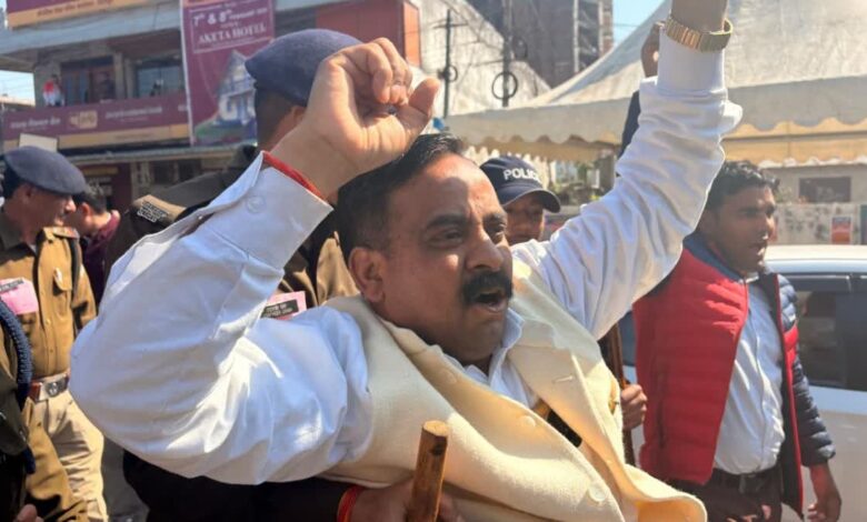 देहरादून। मंगलवार से शुरू हुए बजट सत्र के पहले दिन पूर्व विधायक भीमलाल आर्या अचानक सभी बैरिकेटिंग पार कर विधानसभा के गेट पर पहुंच गए जहां पर उन्होंने भू कानून को लेकर नारेबाजी की जिसके बाद सुरक्षा कर्मियों के पसीने छूट गए। उत्तराखंड में भू कानून को लेकर चल रही चर्चा पर सिसायत गर्मा गई है। इसका असर विधानसभा सत्र के पहले दिन देखने को मिला, जहां पर थराली से पूर्व विधायक भीमलाल आर्या अचानक विधानसभा के गेट पर पहुंच गए। उनके साथ एक और समर्थक ने विधानसभा के मुख्य गेट पर पहुंचकर भू कानून को लेकर नारेबाजी की।