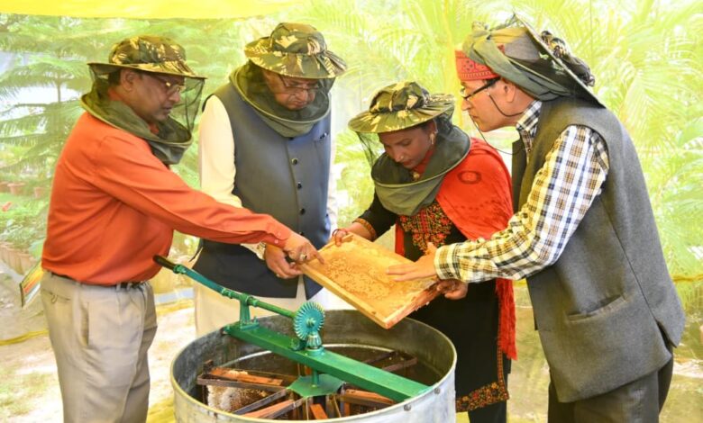 कृषि मंत्री ने कहा उत्तराखण्ड में 9000 से अधिक कृषक मधुमक्खी पालन व्यवसायिक रूप से कर रहे हैं, जिससे लगभग 3300 एमटी का उत्पादन हो रहा है। इसके अतिरिक्त कई कृषक छोटे स्केल पर भी मधुमक्खी पालन कर रहे हैं। कृषिको द्वारा मुख्यतः इन्डिका और मेलिफेरा प्रजातियों से शहद का उत्पादन किया जा रहा है। कृषि मंत्री ने बताया कि हमारी सरकार ने हर जिले में एक मधुग्राम और जनपद चम्पावत व देहरादून में दो मधुग्राम भी चयनित किये गये हैं। उन्होंने बताया कि उत्तराखण्ड में शहद के प्रसंस्करण हेतु 13 मधु प्रसंस्करण इकाईयॉ स्थापित हैं, जिनकी प्रसंस्करण क्षमता 200 मै0टन प्रतिदिन से भी अधिक है। राज्य में मौनपालन को बढ़ावा देने हेतु केन्द्रपोषित बागवानी मिशन योजनान्तर्गत 40 प्रतिशत अनुदान, राज्य सेक्टर की मधुग्राम योजनान्तर्गत 40 प्रतिशत टॉपअप प्रदान करते हुए कुल 80 प्रतिशत अनुदान से लाभान्वित किया जा रहा है। पर-परागण के लिए परिवहन पर 750 रुपये प्रति मौनबॉक्स अनुदान प्रदान किया जा रहा है। केन्द्रपोषित राष्ट्रीय मधुमक्खीपालन एवं शहद मिशन योजनान्तर्गत मौनपालन से सम्बन्धित इकाई स्थापना हेतु 90 प्रतिशत अनुदान प्रदान किया जा रहा है। उत्तराखण्ड में उत्पादित होने वाला शहद उच्च गुणवत्ता युक्त है। सरकार के विभिन्न प्रयासों के माध्यम से शहद उत्पादन के लिए किसानों को बेहतर सुविधाएं और प्रशिक्षण दिया जा रहा है। इस अवसर पर बागवानी मिशन के निदेशक महेन्द्र पाल, मुख्य उद्यान अधिकारी डा. डी.के. तिवारी, पिंकी स्वयं सहायता समूह से पिंकी, किरन आदि सहित अन्य अधिकारी भी उपस्थित रहे।