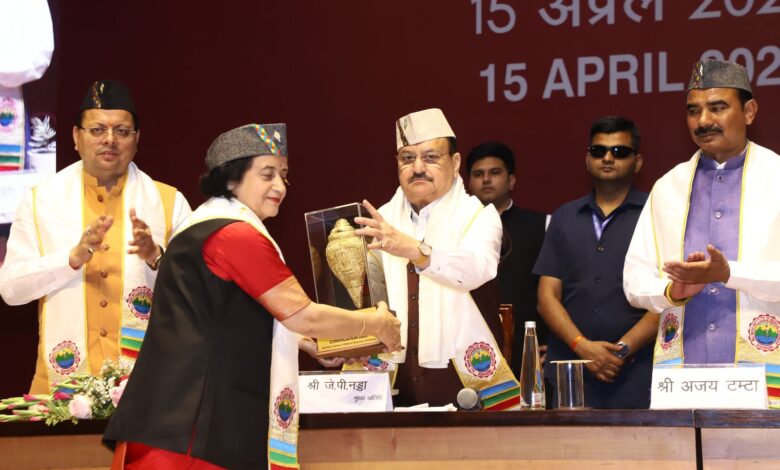 ऋषिकेश। केंद्रीय स्वास्थ्य और परिवार कल्याण मंत्री जगत प्रकाश नड्डा ने एम्स ऋषिकेश के पांचवें दीक्षांत समारोह की अध्यक्षता की। उनके साथ उत्तराखंड के मुख्यमंत्री पुष्कर सिंह धामी; उत्तराखंड के स्वास्थ्य और शिक्षा मंत्री धन सिंह रावत; केंद्रीय मंत्री अजय टम्टा और लोकसभा सांसद अजय भट्ट, त्रिवेंद्र सिंह रावत; और उत्तराखंड विधानसभा की अध्यक्ष रितु खंडूरी भूषण उपस्थित थे। सभा को संबोधित करते हुए जेपी नड्डा ने कहा कि दीक्षांत समारोह एक विशेष अवसर है जो छात्रों की उपलब्धियों को मान्यता देता है। उन्होंने कहा कि देश के प्रत्येक गरीब व्यक्ति को सस्ती और गुणवत्तापूर्ण स्वास्थ्य सेवा प्रदान करना केंद्र सरकार की प्राथमिकता है। जेपी नड्डा ने देश भर के एम्स संस्थानों की चिकित्सा शिक्षा और सेवाओं में उपलब्धियों को रेखांकित करते हुए कहा कि इस सदी की शुरुआत तक, भारत में केवल एक एम्स था, वहीं आज, देश में 22 एम्स संचालित हो रहे हैं। उन्होंने कहा कि एम्स ऋषिकेश ने अपनी उत्कृष्ट सेवाओं के कारण स्वास्थ्य संस्थानों के बीच एक अद्वितीय पहचान बनाई है। उन्होंने नागरिकों के लिए विश्व-स्तरीय स्वास्थ्य सेवा प्रदान करने के लिए केंद्र सरकार की प्रतिबद्धता को दोहराया। उन्होंने कहा सरकार ऐसी स्वास्थ्य सेवा प्रदान करने पर केंद्रित है जो न केवल उपचारात्मक हो बल्कि निवारक, उपशामक और पुनर्वासिक भी हो। स्वास्थ्य क्षेत्र में केंद्र सरकार की उपलब्धियों को उजागर करते हुए, श्री नड्डा ने कहा, आज, देश भर में 1.75 लाख आयुष्मान आरोग्य मंदिर संचालित हो रहे हैं जो स्वास्थ्य और कल्याण से संबंधित विभिन्न सेवाएं प्रदान कर रहे हैं। पिछले 10 वर्षों में मेडिकल कॉलेजों में 101 प्रतिशत की वृद्धि हुई है, और अब देश भर में कुल 780 मेडिकल कॉलेज हैं। एमबीबीएस सीटों में 130 प्रतिशत और पीजी सीटों में 138 प्रतिशत की वृद्धि हुई है। उन्होंने आगे कहा इसी तरह, पैरामेडिक्स की जरूरतों को पूरा करने के लिए, 157 नर्सिंग कॉलेज भी स्थापित किए जा रहे हैं, जो मेडिकल कॉलेजों के साथ सह-स्थित होंगे।