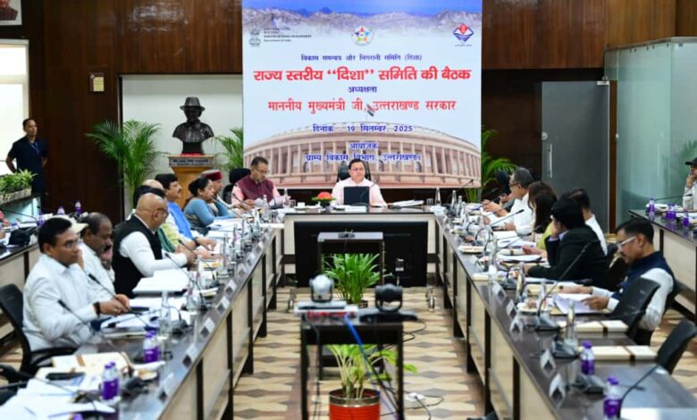 देहरादून। मुख्यमंत्री पुष्कर सिंह धामी की अध्यक्षता में शुक्रवार को सचिवालय, देहरादून में राज्य स्तरीय दिशा समिति की पहली बैठक आयोजित की गई। इस अवसर पर मुख्यमंत्री ने राज्य सरकार और केंद्र सरकार की विभिन्न महत्वाकांक्षी योजनाओं की प्रगति की गहन समीक्षा की। बैठक में कृषि, ग्रामीण विकास, शहरी विकास, स्वास्थ्य, शिक्षा, महिला एवं बाल विकास, रोजगार, सामाजिक सुरक्षा, डिजिटल प्रौद्योगिकी, पर्यावरण एवं खेल से जुड़ी योजनाओं की कार्यवाही पर विस्तार से चर्चा की गई। मुख्यमंत्री ने अधिकारियों को निर्देश दिए कि योजनाओं के क्रियान्वयन में तेजी लाई जाए, ताकि अधिक से अधिक लोग शीघ्र इसका लाभ प्राप्त कर सकें। उन्होंने कहा कि योजनाओं के संचालन में पारदर्शिता, जवाबदेही और विभागों के बीच आपसी समन्वय अत्यंत आवश्यक है। मुख्यमंत्री ने विशेष रूप से बल दिया कि राज्य को देश के अग्रणी राज्यों की श्रेणी में लाने के लिए लगातार ठोस और सार्थक कदम उठाए जा रहे हैं और इसमें किसी प्रकार की शिथिलता स्वीकार्य नहीं होगी।