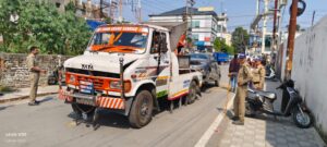 उक्त आदेशों के क्रम में *थाना पटेलनगर के बाजार चौकी क्षेत्रान्तर्गत महंत इंद्रेश अस्पताल रोड ओर दैनिक जागरण वाली गली* से पुलिस टीम द्वारा अव्यवस्थित रूप से नो पार्किंग में अपना वाहन खडा कर यातायात को अवरूद्ध करने तथा यातायात के नियमों का उल्लघनं करने वाले 28 दोपहिया वाहनों तथा 01 कार को मौके से टो कर थाना पटेलनगर पर दाखिल किया गया। जिनके विरूद्ध कार्यवाही की जा रही है। साथ ही मौके पर ही नो पार्किंग में खडी 32 बाइकों का चालान किया गया।
