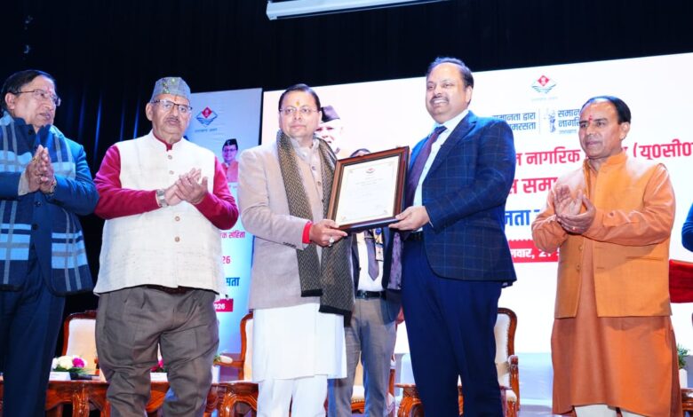 देहरादून। मुख्यमंत्री पुष्कर सिंह धामी ने मंगलवार को हिमालयन कल्चरल सेंटर गढ़ी कैंट में आयोजित प्रथम “समान नागरिक संहिता दिवस” को संबोधित किया। इस मौके पर उन्होंने समान नागरिक संहिता को तैयार करने वाले कमेटी के सदस्यों, कुशल क्रियान्वयन करने वाले प्रशासनिक अधिकारियों और पंजीकरण में योगदान देने वाले वीएलसी को भी सम्मानित किया। कार्यक्रम के दौरान मुख्यमंत्री ने यूसीसी पर आधारित फोटो प्रदर्शनी का अवलोकन भी किया। समारोह को संबोधित करते हुए मुख्यमंत्री पुष्कर सिंह धामी ने कहा कि आज का दिन उत्तराखंड राज्य के इतिहास में स्वर्णिम अध्याय के रूप में अंकित रहेगा, इसी दिन राज्य में समान नागरिक संहिता लागू हुई है, जिससे समाज में सामाजिक न्याय, समानता और संवैधानिक मूल्यों की स्थापना सुनिश्चित हो सकी। उन्होंने कहा कि सनातन संस्कृति और परंपरा सदैव समरसता और समानता की संवाहक रही है। भगवान श्रीकृष्ण ने भी गीता में “समोहम सर्वभूतेषु न मे द्वेष्योस्ति न प्रियः” का उपदेश दिया है, जिसका अर्थ है कि मैं सभी प्राणियों के प्रति समान भाव रखता हूँ, न किसी का शत्रु हूँ और न ही किसी के प्रति पक्षपात करता हूँ। सनातन संस्कृति की यही महानता है, जिसने सदियों से दुनिया को समानता, न्याय और मानवता का मार्ग दिखाया है।