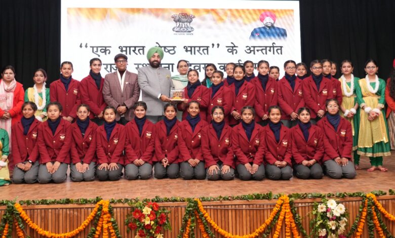 उन्होंने कहा कि अयोध्या में श्रीराम मंदिर में राम लला मूर्ति प्राण प्रतिष्ठा होना, भारत के इतिहास में एक महत्वपूर्ण घटना है, जो देशवासियों के लिए बहुत अविस्मरणीय पल है। आखिरकार, समूचा राष्ट्र सबसे महत्वपूर्ण ऐतिहासिक क्षण का गवाह बना है। राम की नगरी अयोध्या हो या फिर बाबा विश्वनाथ की नगरी काशी हो, इनके अभूतपूर्व विकास से आज यूपी वैश्विक स्तर पर सबसे बड़ा सांस्कृतिक और धार्मिक पर्यटक स्थल बन गया है। राज्यपाल ने कहा कि इस प्रकार के कार्यक्रम हमारे विविध राज्यों और केंद्रशासित राज्यों की परस्पर परंपराओं, प्रथाओं, संस्कृति और ज्ञान की समझ को बढ़ाते हुए भारत की एकता और अखंडता को मजबूती देने वाली एक अनोखी पहल है। ये समारोह हमारी ताकत का परिचायक है। ‘एक भारत, श्रेष्ठ भारत’ की संकल्पना हमारी सदियों पुरानी एकता की शक्ति को बल देने वाली है। इस कार्यक्रम में प्रथम महिला गुरमीत कौर, सचिव राज्यपाल रविनाथ रामन, सचिव राधिका झा, सचिव डॉ. पंकज कुमार पांडे, आईजी पुलिस विम्मी सचदेवा रामन, महानिदेशक सूचना बंशीधर तिवारी, अपर सचिव राज्यपाल स्वाति. एस. भदौरिया, अपर सचिव नितिन सिंह भदौरिया, रंजना राजगुरु, डॉ. आशीष श्रीवास्तव, वित नियंत्रक डॉ. तृप्ति श्रीवास्तव सहित अनेक लोग उपस्थित रहे।