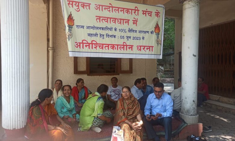 देहरादून। पूर्व घोषित कार्यक्रम के अनुसार संयुक्त आंदोलनकारी मंच के तत्वावधान में राज्य आंदोलनकारियों के लिये राज्याधीन सेवाओं में 10 प्रतिशत क्षैतिज आरक्षण की बहाली और चिन्हीकरण की प्रक्रिया दोबारा शुरू करने की माँग को लेकर शहीद स्मारक देहरादून में अनिश्चितकालीन धरना प्रारंभ हो गया है। मंच के संयोजक क्रान्ति कुकरेती ने कहा कि स्वयं मुख्यमंत्री ने अपने श्रीमुख से घोषणा की थी कि हमने गैरसैंण कैबिनेट में राज्य आंदोलनकारियों के लिये 10 प्रतिशत क्षैतिज आरक्षण बहाली का रास्ता साफ कर दिया मगर उसके बाद 3 माह गुजर जाने के बाद आज तक विभिन्न प्रतियोगिताओं में सफल घोषित हुये अभ्यर्थियों की नियुक्ति क्यों नहीं हुई। क्या नौकरशाही, सरकार को गुमराह कर रही है या सरकार में इच्छा शक्ति का अभाव है ? अब कारण जो भी हो लेकिन अब आंदोलनकारी अपनी दोनों माँगो के पूरी होने तक इस आंदोलन जारी रखेंगे।आज के कार्यक्रम में प्रमुख रूप से संयोजक क्रांति कुमार, सह संयोजक अम्बुज शर्मा,प्रदेश प्रवक्ता प्रदीप कुकरेती,संगीता रावत,विनोद असवाल,देवेश्वरी रावत,पूनम कंडारी, सूर्यकांत बमराड़ा, रामकिशन, विकास बिष्ट, प्रवीण पुरोहित, आशीष रावत, प्रभात डंडरियाल,कुंवर सिंह नेगी,उपेंद्र प्रसाद सेमवाल, रमेश सिंह, एकादशी, बी एस कंडारी, पुष्पा बहुगुणा, विमल जुयाल, हरि प्रकाश शर्मा,सुरेश नेगी, वीर सिंह आदि मौजूद रहे।