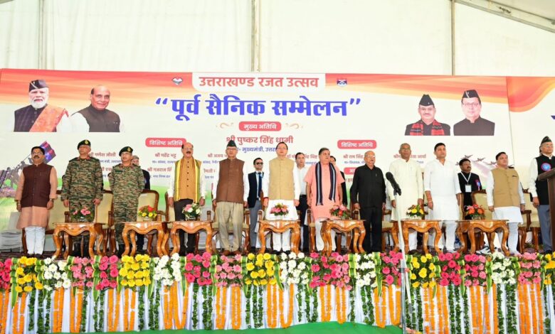 देहरादून। मुख्यमंत्री पुष्कर सिंह धामी ने राज्य स्थापना की रजत जयंती के अवसर पर हल्द्वानी के एम.बी.पी.जी. कॉलेज प्रांगण में आयोजित ‘पूर्व सैनिक सम्मेलन’ का शुभारंभ किया। इस अवसर पर प्रदेशभर से बड़ी संख्या में पूर्व सैनिकों, वीर नारियों, वीरांगनाओं एवं उनके परिजनों द्वारा प्रतिभाग किया गया। मुख्यमंत्री ने उपस्थित पूर्व सैनिकों पर पुष्प वर्षा कर राज्य निर्माण व राष्ट्र सेवा में उनके योगदान के लिये सभी का अभिनंदन किया। उन्होंने कहा कि उत्तराखंड का हर परिवार गर्व से कह सकता है कि उसके घर से कोई न कोई भारत माता की सेवा में समर्पित है। मुख्यमंत्री ने कहा कि देवभूमि उत्तराखंड वास्तव में वीर भूमि है, जहाँ की माटी में ही राष्ट्रभक्ति और बलिदान की भावना रची-बसी है।