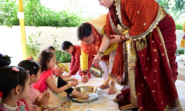 देहरादून। रामनवमी के शुभ अवसर पर मुख्यमंत्री आवास में मुख्यमंत्री श्री पुष्कर सिंह धामी ने कन्या पूजन कर देवी स्वरूपा बालिकाओं का सम्मान किया। इस दौरान उन्होंने पारंपरिक रीति-रिवाजों के अनुसार कन्याओं को भोजन कराया तथा उनका आशीर्वाद प्राप्त किया।