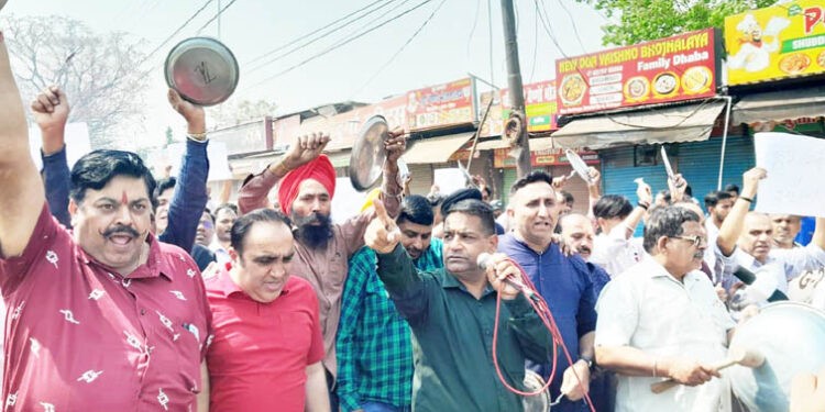 रुद्रपुर। सडक के चौड़ीकरण तथा जी 20 सम्मेलन के नाम पर व्यापारियों को उजाड़ने की कार्रवाई के खिलाफ व्यापारियों द्वारा आंदोलन चौथे दिन भी जारी रखा गया। राममनोहर लोहिया के दुकानदारों ने कारोबार बंद रख थाली बजाकर प्रदर्शन किया। इस दौरान व्यापारियों ने प्रशासन के खिलाफ जमकर नारेबाजी की। मंगलवार को व्यापार मंडल अध्यक्ष संजय जुनेजा तथा राममनोहर लोहिया मार्केट एसोसिएशन के अध्यक्ष आशू ग्रोवर के नेतृत्व में थाली-ताली बजाते हुए प्रशासन के विरुद्ध नारेबाजी करते प्रदर्शन किया और शहर में विशाल जुलूस निकाला। इससे पूर्व सैकड़ों व्यापारी लोहिया मार्केट में एकत्रित हुए। जहां सभा भी हुई। यहां उन्होंने कहा कि रोजगार बचाने के लिए व्यापारी किसी भी हद तक अपना आंदोलन आगे ले जाने के लिए तैयार हैं। अधिकारी एक सोची समझी योजना के तहत मुख्य मार्ग के दोनों ओर पिछले कई दशकों से रोजगार कर रहे व्यापारियों को उजाडने की मंशा पर कार्य कर रहे हैं। जिसे किसी भी कीमत पर बर्दाश्त नहीं किया जायेगा। उन्होंने कहा कि एकजुटता से ही इस लड़ाई को जीता जा सकता है। पहले व्यापारियों ने कोरोना से बचने के लिए अपने कारोबार बंद किए थे। अब व्यापारी कारोबार बंद कर अपनी दुकानें बचाने के लिए संघर्ष कर रहे हैं। इस मौके पर अन्य व्यापारियों ने कहा कि व्यापारियों की ही जीत होगी इसके लिए सामूहिक संघर्ष जारी रहेगा। इसके बाद जुलूस लोहिया मार्केट से प्रारंभ होते हुए डीडी चौक, अग्रसेन चौक, बाटा चौक, मुख्य बाजार, भगत सिंह चौक, गल्ला मंडी, पांच मंदिर, विद्धवानी मार्केट आदि मार्गों से होते हुए वापस लोहिया मार्केट धरना स्थल पर समाप्त हुआ। इस दौरान सुरेंद्र तनेजा, इंद्रजीत सिंह, अनमोल, अमरजीत सिंह, नंद किशोर, श्याम धींगरा, दीपक धींगरा, मोइनुद्दीन, हरीश आहूजा, अश्वनी कुमार, इदरीस, सुरेंद्र सिंह, शैलेन्द्र ग्रोवर, अनिल तनेजा, अजय कक्कड़, मनीष कालड़ा, विनोद ठुकराल, हर्ष रावल, विक्की रावल, हरीश पिन्नी, अनिल कक्कड़, राजा मदान, सुशील गावा, नरेंद्र चावला, सुनील प्रजापति, राजू जोशी, हरीश जोशी, जगवीर सिंह, प्रशांत, ललित मेहता, सोहनलाल, भगवानदास,बृजेश गुप्ता, अनिल चौहान, राधेश्याम गुप्ता, मालाकार, महेंद्र पाल, नरेश पाल आदि व्यापारी मौजूद थे। इधर काशीपुर बाई पास रोड की समोसा मार्केट भी बंद रही।