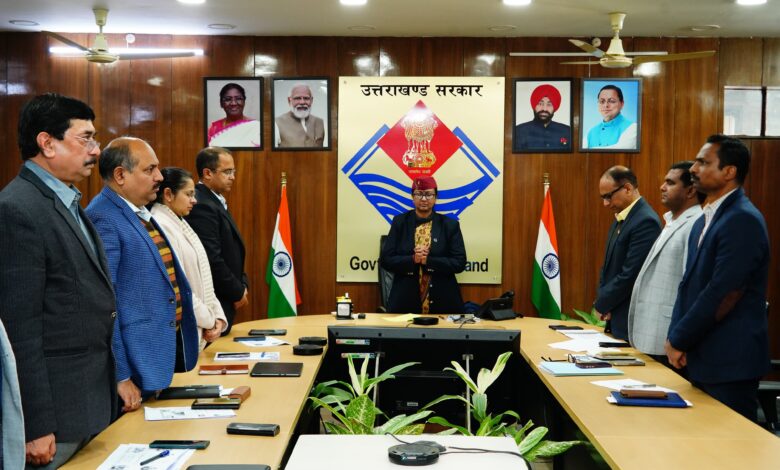 देहरादून। राष्ट्रपिता महात्मा गांधी जी की पुण्यतिथि के अवसर पर गुरूवार को मुख्यमंत्री पुष्कर सिंह धामी द्वारा उत्तराखण्ड सदन नई दिल्ली में शहीदों की स्मृति में दो मिनट का मौन रख कर श्रद्धांजलि अर्पित की गई। सचिवालय देहरादून में भी मुख्य सचिव राधा रतूड़ी की उपस्थिति में भी सभी अधिकारियों ने 02 मिनट का मौन रख कर शहीदों को श्रद्धांजलि अर्पित की गई। भारतीय स्वतंत्रता संग्राम में बलिदान देने वाले शहीदों को स्मरण करते हुए पूर्वाह्न 11ः00 बजे सभी जनपदों में भी दो मिनट का मौन रखकर शहीदों को नमन किया गया।