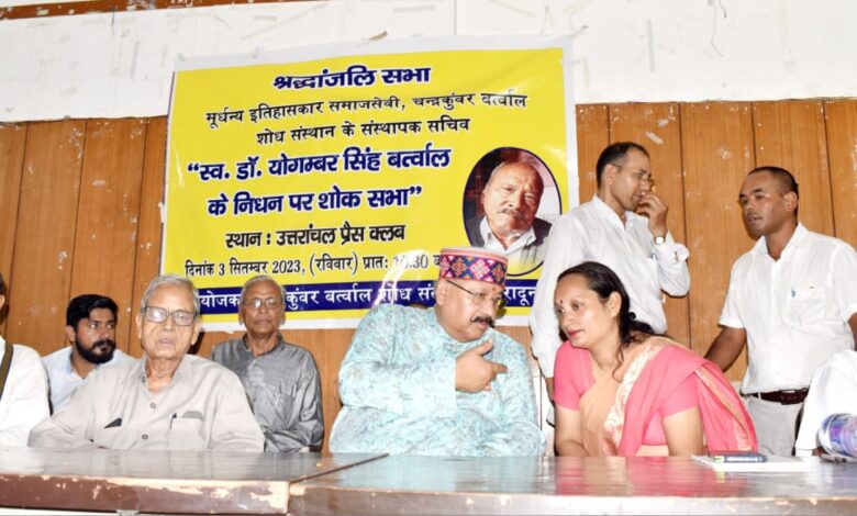 उन्होंने कहा कि डॉ योगम्बर सिंह बर्त्वाल को यदि हम चलता फिरता पुस्तकालय कहें तो कोई अतिश्योक्ति नहीं होगी। तुंगनाथी जी ने दो हजार गांवों का भ्रमण कर उन गांवों की भौगोलिक, ऐतिहासिक जानकारी को हासिल किया था। डॉ. योगम्बर सिंह बर्त्वाल तुंगनाथी का जाना साहित्य जगत के साथ साथ उत्तराखंड राज्य कि एक बड़ी क्षति है।ईश्वर दिवंगत आत्मा को अपने श्रीचरणों में स्थान। श्रद्धांजलि सभा में चन्द्र कुंवर बर्त्वाल शोध संस्थान से जुड़े कई साहित्यिक, पूर्व मंत्री शुरवीर सिंह सजवाण, सुरेन्द्र कुमार अग्रवाल सहित अनेक गणमान्य लोग मौजूद थे।