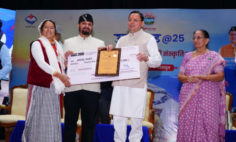 देहरादून। मुख्यमंत्री पुष्कर सिंह धामी ने सोमवार को हिमालयन सांस्कृतिक केन्द्र, गढ़ी कैण्ट, देहरादून में पर्यटन विभाग द्वारा आयोजित उत्तराखण्ड/25 रोमांच, अध्यात्म और अनोखी संस्कृति का उत्सव कार्यक्रम में प्रतिभाग किया। इस अवसर पर मुख्यमंत्री ने नीति में आयोजित होने वाले अल्ट्रा मैराथन रेस के लोगो का अनावरण एवं पर्यटन विभाग द्वारा तैयार की गई थ्रोन आफ द गॉड्स कॉफी टेबल बुक का विमोचन किया। मुख्यमंत्री ने फोटो प्रदर्शनी प्रतियोगिता के विजेताओं को पुरस्कार प्रदान कर उन्हें सम्मानित किया। उन्होंने 13 जिलों के उत्कृष्ट होम स्टे संचालकों को भी पुरस्कार वितरित किए। उन्होंने राज्यभर के एस्ट्रो टूर गाइड एवं टूर मैनेजर को सम्मानित किया। मुख्यमंत्री ने काला नाग चोटी का सफल आरोहण करने वाले पर्यटन विभाग की ओर से चयनित पर्वतारोहियों और आईटीबीपी के 13 सदस्यीय दल को भी सम्मानित किया। मुख्यमंत्री ने सभी विभागों, अधिकारियों, कर्मचारियों का धन्यवाद करते हुए कहा कि सभी लोगों की कड़ी मेहनत से प्रदेशभर में रजत जयंती पर्व के सभी कार्यक्रम सफलतापूर्वक संपन्न हुए। उन्होंने कहा 25 वर्ष पूर्व राज्य निर्माण के बाद इस नवोदित राज्य ने तेजी से उन्नति की है। यह तरक्की आंदोलनकारियों की तपस्या का परिणाम है।