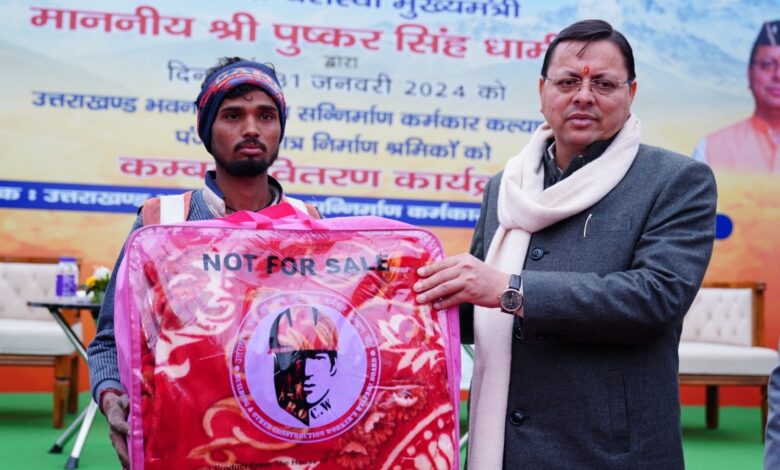 देहरादून। मुख्यमंत्री पुष्कर सिंह धामी ने बुधवार को सहस्त्रधारा रोड स्थित आईटी पार्क के समीप उत्तराखण्ड भवन एवं अन्य सन्निर्माण कल्याण बोर्ड श्रम विभाग में पंजीकृत श्रमिकों को कम्बल वितरण किये। इस दौरान मुख्यमंत्री ने श्रमिकों से बातचीत कर उनका हालचाल जाना और हौसला भी बढ़ाया।