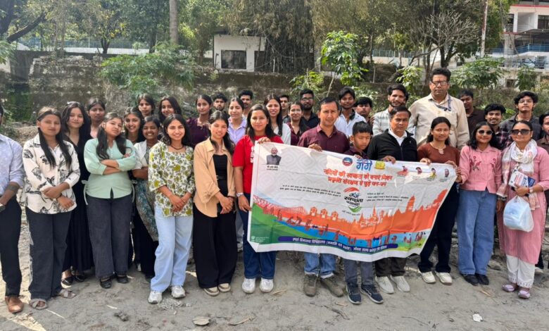 देहरादून। नमामि गंगे कार्यक्रम के अंतर्गत स्पर्श हिमालय विश्वविद्यालय, देहरादून के प्रबंधन एवं कंप्यूटर साइंस विभाग द्वारा स्वच्छता पखवाड़ा के अवसर पर एक विशेष सफाई अभियान का आयोजन किया गया। यह अभियान पौड़ी गढ़वाल जनपद के यमकेश्वर क्षेत्र स्थित फूल चट्टी में गंगा नदी के तट पर संचालित हुआ। अभियान में विभाग के छात्र-छात्राओं ने बढ़-चढ़कर हिस्सा लिया और पूरे उत्साह के साथ गंगा तट की सफाई की। इस दौरान कचरा एकत्र किया गया, जलकुंभी हटाई गई तथा नदी किनारे की साफ-सफाई की गई। छात्रों के इस प्रयास से क्षेत्र में स्वच्छता को लेकर सकारात्मक माहौल बना।