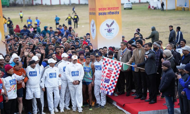 देहरादून। मुख्य निर्वाचन अधिकारी डॉ. बीवीआरसी पुरुषोत्तम के निर्देशों के क्रम में “स्वस्थ मतदाता-स्वस्थ लोकतंत्र” की थीम पर रविवार को हाथीबड़कला स्थित सर्वे स्टेडियम में 10 किमी दौड़ का आयोजन किया गया। इस दौड़ में भारतीय सेना, आईटीबीपी, उत्तराखण्ड पुलिस, सर्वे ऑफ़ इंडिया, सचिवालय एथलेटिक क्लब समेत एक हज़ार से अधिक प्रतिभागियों ने प्रतिभाग किया। कार्यक्रम में एडिशनल सर्वेयर जनरल श्याम वीर सिंह ने बतौर मुख्य अतिथि विजेताओं को सम्मानित किया। दौड़ में विभिन्न श्रेणियों के एक हज़ार से अधिक प्रतिभागियों ने कार्यक्रमानुसार प्रातः 6 बजे ग्राउंड में एकत्र होकर श्रेणीवार चेस्ट नम्बर प्राप्त किए। प्रातः 7 बजे अपर मुख्य निर्वाचन अधिकारी डॉ. विजय कुमार जोगदंडे व मुख्य अतिथि एडिशनल सर्वेयर जनरल ने सभी प्रतिभागियों श्रेणीवार एक-एक कर फ्लैग ऑफ करते हुए रवाना किया। प्रतिभागी सर्वे स्टेडियम से न्यू कैंट रोड होते हुए महिंद्रा ग्राउंड का चक्कर लगाते हुए पुनः सर्वे स्टेडियम पहुंचे।