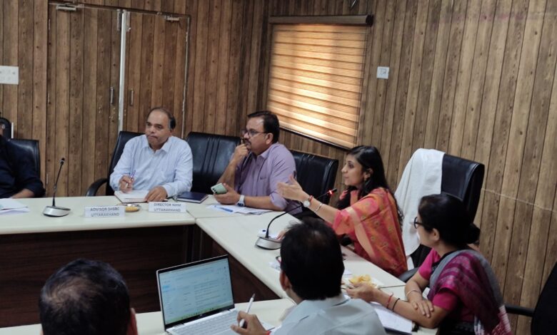 समीक्षा बैठक के दौरान मानव संसाधन पर राष्ट्रीय स्वास्थ्य मिशन के अंतर्गत मौजूदा पद के सापेक्ष जल्द ही रिक्त पदों को भरने पर बल दिया गया। उन्होंने कहा कि प्रदेश में सभी जनपदों में स्वास्थ्य कर्मियों की संख्या, प्रशिक्षण और उनकी तैनाती की स्थिति की जांच की जाए। समीक्षा बैठक में स्वास्थ्य संबंधी जागरूकता कार्यक्रमों के प्रचार-प्रसार और उनकी प्रभावशीलता का मूल्यांकन मिशन निदेशक द्वारा किया गया। उन्होंने राष्ट्रीय स्वास्थ्य मिशन के अंतर्गत संचालित समस्त कार्यक्रमों की जानकारी व उनके लाभ आम जनमानस तक प्रचारित किये जाने हेतु निर्देशित किया गया। बैठक में डॉ नरेंद्र शर्मा निदेशक स्वास्थ्य सेवा महानिदेशालय, डॉ मनु जैन निदेशक एनएचएम, डॉ तृप्ति बहुगुणा सलाहाकार एसएचआरसी, मुख्य चिकित्सा अधिकारी समस्त जनपद, सहायक निदेशक एन.एच.एम. सहित राष्ट्रीय स्वास्थ्य मिशन के अधिकारी व कर्मचारी मौजूद रहे।