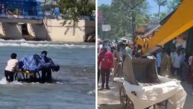 अतिक्रमण की कार्रवाई से बचने के लिए ठेली लेकर गंगा में घुसे युवक, प्रशासन के फूले हाथ-पांव